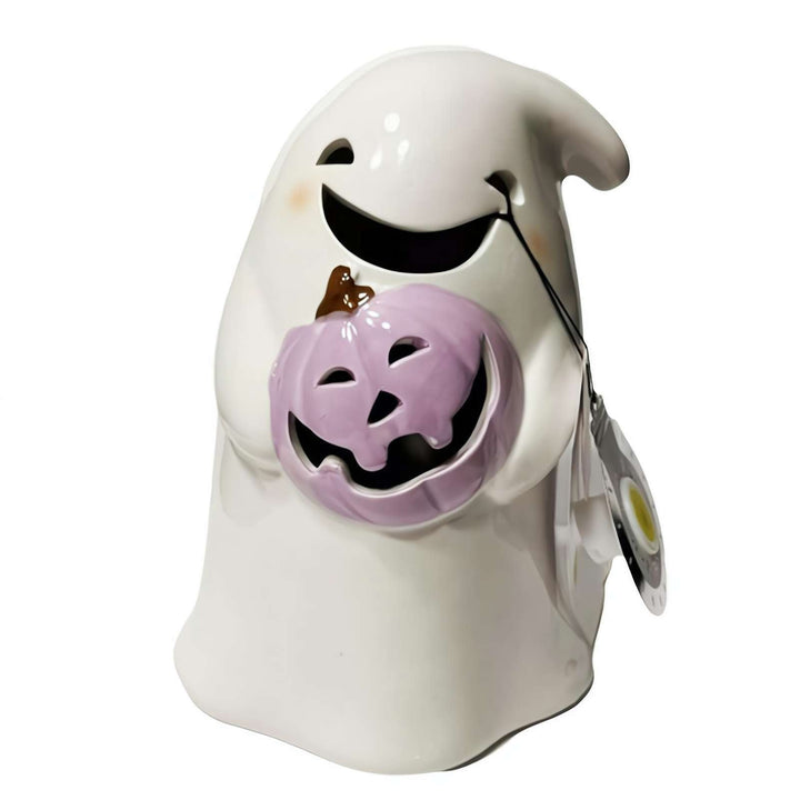 Enhance your Halloween decor with this limited edition Hyde & Eek figurine. The ghost character holding a pink pumpkin is perfect for adding a spooky touch to your home.