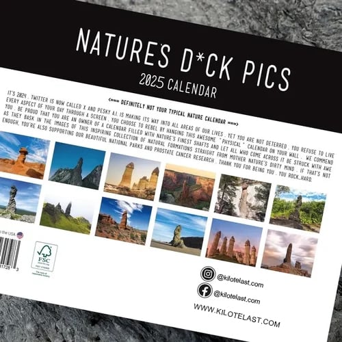 This is definitely not your typical nature wall calendar. The funny shapely rocks of our 2025 calendar will bring smiles and laughter to any occasion. It's also a hilarious gift that will make you the talk of any white elephant or secret santa gift exchange this Christmas. The awe inspiring hard rock-filled photos of this calendar will surely help visually stimulate any office cubicle or empty wall!